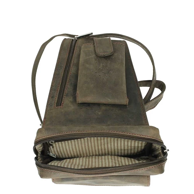 Neem alle eigendommen veilig mee over straat met de anti-diefstal Dark Nature Dagmar Crossover van Bear Design. De tas kan namelijk voor op de buik worden gedragen, zodat de spullen altijd in de gaten gehouden kunnen worden. Het hoofdvak sluit met een lange rits en beschikt aan de binnenkant over een ritsvak. Wat kleinere spullen kunnen worden opgeborgen in het voorvak dat sluit met een magneet. Op de flap bevindt zich een ritsvak en een telefoonvak en hierdoor blijven deze eigendommen snel toegankelijk.Dankzij het schitterende geoliede rundleder wordt de tas alleen maar mooier in gebruik.