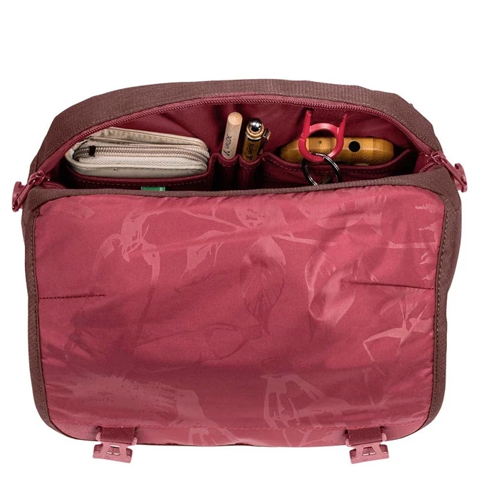 DeRecycled agaPET II Schoudertas van Vaude is een compacte en fijne schoudertas met een georganiseerd interieur. Het hoofdvak sluit door middel van een flap met gespsluitingen en een rits. Persoonljike eigendommen zijn zeer overzichtelijk op te bergen dankzij de insteekvakken, pennenhouders en een sleutelclip aan de binnenzijde. Onder de flap bevindt zich een ritsvak dat is voorzien van insteekvakken en daarnaast heeft de tas aan de achterzijde en ruim ritsvak. De schouderriem is in lengte verstelbaar en hierdoor is de tas prettig over de schouder te dragen.