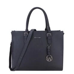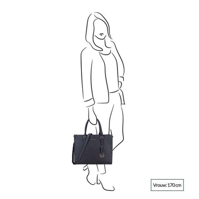 De Natalia-One werktas van Wimona is geschikt als werktas, maar ook zeker als schooltas. Door de afneembare en verstelbare schouderriem is de tas comfortabel te dragen. Aan de achterkant van de tas bevindt zich een vakje met ritssluiting. Het interieur van de tas is voorzien van een groot vak met ritssluiting. Het vak is ruim genoeg om al je boeken en papieren in te stoppen. In het grote vak bevinden zich ook twee kleinere vakjes met ritssluiting en twee insteekvakken die perfect zijn om je mobiele telefoon of andere spullen in op te ruimen.